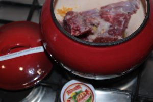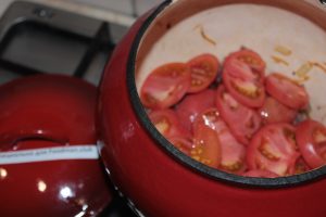 - Après que la viande soit bien frite dans son propre jus, mettre les tomates en tranches.