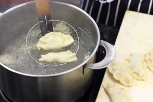 Vous devez les faire cuire pendant 3-5 minutes, jusqu’à ce qu’ils soient va apparaître au sommet. Après cela, il est recommandé de faire frire les boulettes dans une casserole, la pâte deviendra croustillante. Au service d’en haut mettre une tranche de beurre.