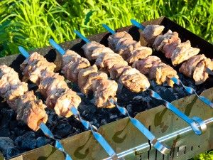 Kindle le gril. Mettre la viande sur les brochettes, faire griller les brochettes pendant 20-30 minutes jusqu’à ce que complètement préparé. Servir l’agneau table avec des légumes frais ou des pommes de terre au four.