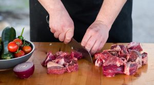 - Couper le boeuf en cubes moyens.