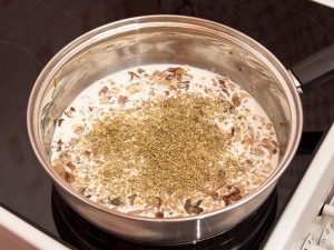 - Après trois minutes, ajoutez l’origan, faites bouillir pendant une minute et retirez du feu.