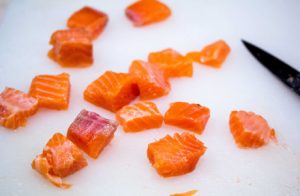 - Saumon libre d’os, coupé en morceaux et les envelopper en feuilles de lasagne pour faire des tubes.