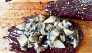 - Placez la garniture aux champignons sur le foie, sur la deuxième assiette. le foie.