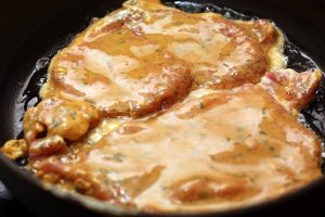 Des côtelettes de porc incroyablement délicieuses et parfumées cuisent à la maison � pané à partir de sauce soja, oeufs, farine, ail et persil séché. Préparez une salade de légumes frais et servez-la avec des côtelettes.