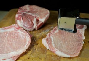 Laver les morceaux de porc sur l’os, sécher avec du papier avec des serviettes et battre doucement la viande sans endommager l’os, saupoudrer avec du sel