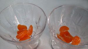 - Nous nettoyons et divisons les mandarines en tranches. Couper en 2 parties.