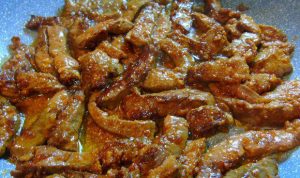 - Faire chauffer l’huile dans une poêle, faire frire rapidement à feu vif le foie.
