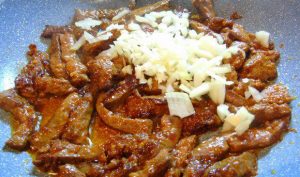 - Mélangez le foie avec la sauce soja, l’amidon, le paprika, ail haché. Réservez une demi-heure.