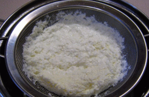 - Ensuite, versez la masse obtenue dans une passoire fine de manière à ce que verre de lactosérum entier. Le sérum peut être utilisé – sur sur cette base, vous pouvez faire frire de délicieuses crêpes ou des beignets.