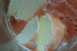 - Ajouter des tranches de glace. Nous laissons un verre de glace pour plus tard. Encore une fois, percer légèrement dans un mélangeur.