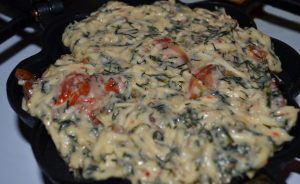 - Mélangez les verts, l’oeuf, la farine, les épices, la levure et le lait.