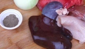 - Abats de lapin (cœur, poumons et foie, purifiés à partir de film) doit être soigneusement lavé et coupé en morceaux.