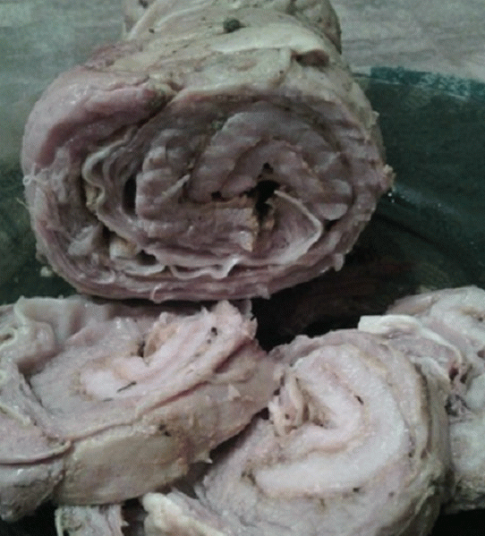 - Saupoudrez la viande d’épices, roulez-la en rouleau.