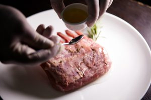 - Salez la longe, frottez-la d’épices et versez l’huile.