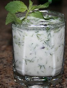 - Versez de l’eau pétillante froide et du yaourt. Mélanger et servir à la table.