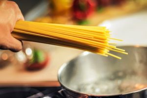 - Faire bouillir les pâtes dans de l’eau salée, ajouter à la casserole avec lapin et mélanger.