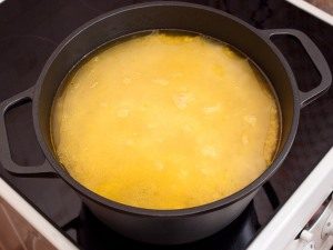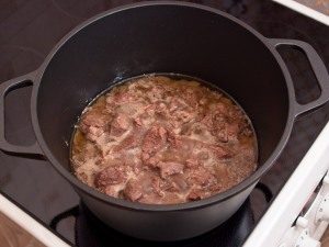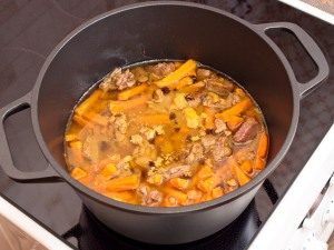 - Versez de l’eau froide au ras du contenu. Fermez le couvercle, laisser mijoter une demi-heure à feu doux.