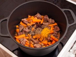 - Ajoutez toutes les épices, remuez.