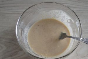 Diluer le beurre de cacahuète avec de l’eau jusqu’à la consistance de la crème sure liquide et le verser dans la casserole. Couvrir la casserole avec un couvercle et laisser mijoter le contenu. jusqu’à ce que la viande soit complètement cuite, elle doit être très douce.