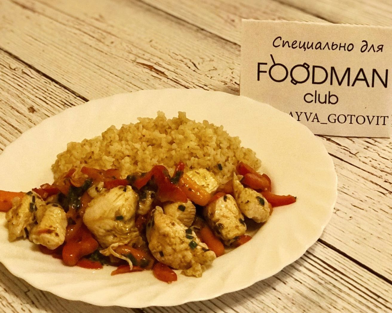 - Couper le poivron en lanières, hacher l’oignon, Couper la poitrine de poulet en dés.