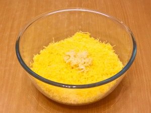 - Broyer le fromage à pâte dure dans un bol à l’aide d’une râpe fine.