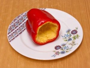 - Placez les oeufs réfrigérés dans les poivrons, espace libre compacter avec la masse restante d’ail et de fromage.