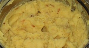 - Nous nettoyons les pommes de terre lavées, les coupons au hasard et les faisons bouillir eau salée jusqu’à tendreté. Nous vidons l’eau, purée de pommes de terre, cool