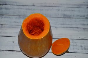 - À la citrouille, coupez le couvercle, retirez les pépins et la pulpe à l’intérieur.