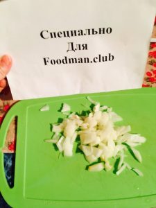 - Nous nettoyons et hachons l’oignon avec de petits cubes, vous pouvez utiliser les rondelles à votre guise.