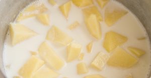 - Mettez les pommes de terre dedans et faites cuire jusqu’à tendreté en faisant un feu faible après ébullition.