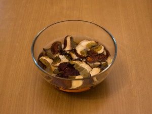 - Faire tremper les champignons séchés dans de l’eau bouillante et laisser reposer une demi-heure.