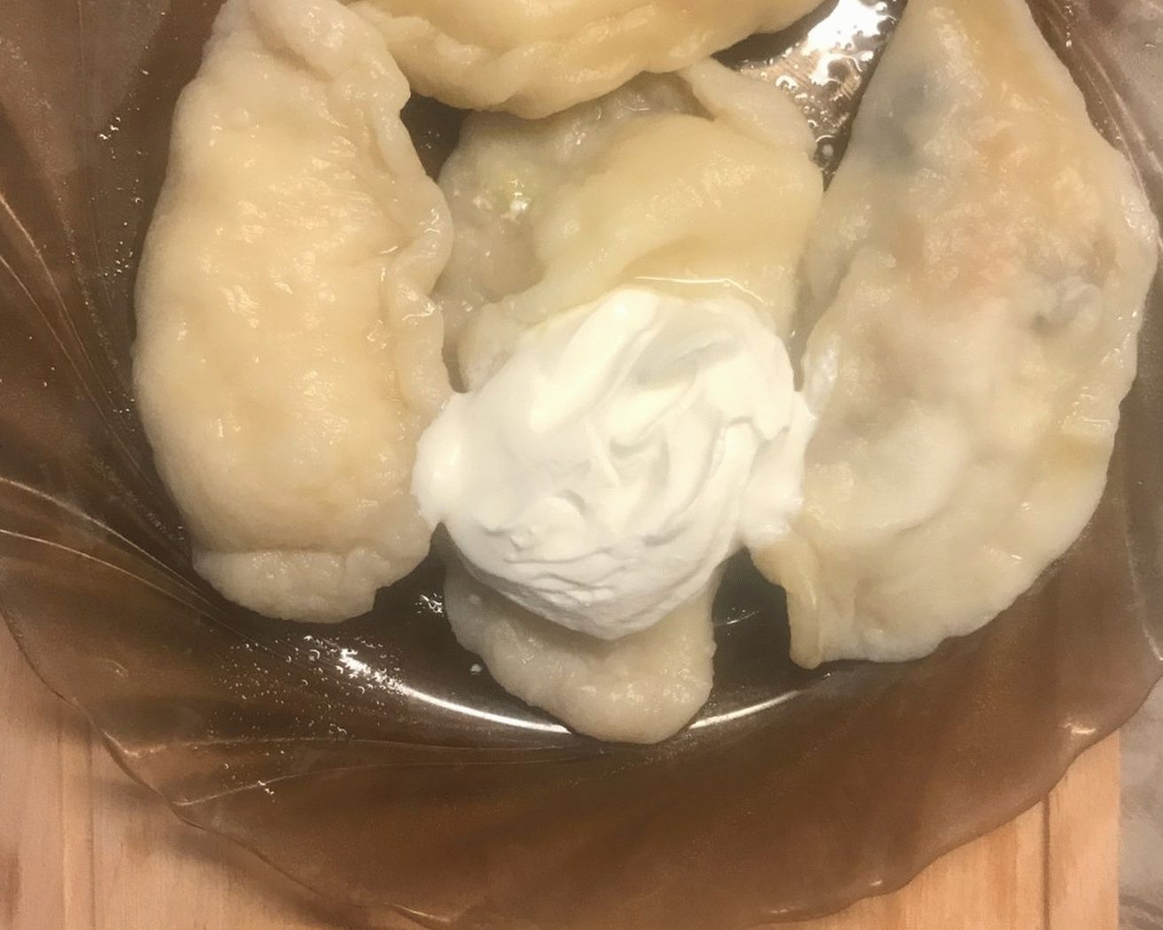 - Faire bouillir pendant 6 minutes dans suffisamment d’eau bouillante. Dumplings devrait apparaître. Servir avec du beurre frit et haché finement oignons et crème sure.