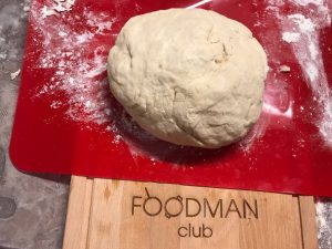 - Cuire la pâte. Tamiser la farine, mélanger avec du sel et du sucre. Dans Au milieu, ajouter l’huile de tournesol et la crème sure. Pour cool faire bouillir de l’eau et pétrir la pâte. La pâte ne doit pas trop coller aux mains – il doit être de cette consistance pour pouvoir être déployé rouleau à pâtisserie. Si la pâte continue à coller, ajoutez de la farine.