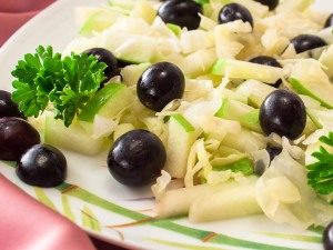 Salade de fruits et légumes très saine et délicieuse. Simple et facile se préparer à la maison. Les pommes et les raisins sont souhaitables avec acide ou goût aigre-doux. Vous pouvez également saupoudrer de la salade sur demande pignons de pin ou graines de sésame séchées à sec casserole jusqu’à brun doré.
