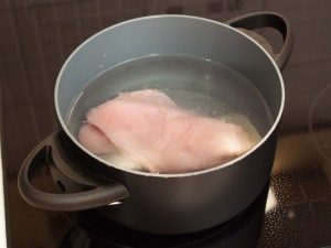 - Laver le filet de poulet, mettre au feu, porter à ébullition, retirer la mousse, cuire encore vingt minutes.