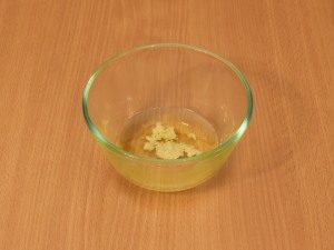 - Pour la vinaigrette, mélangez dans un bol l’huile d’olive avec ail haché, saler, poivrer, demi-jus de citron vert ou citron, remuer bien.