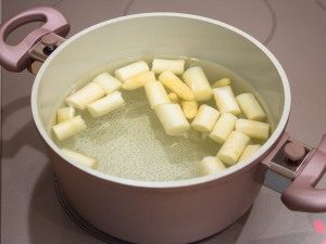 - Tremper les asperges hachées dans de l’eau bouillante et cuire pendant sept minutes.