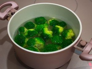 - Le brocoli, trié en inflorescences, également plus bas dans l’eau bouillante, cuire pendant cinq minutes.