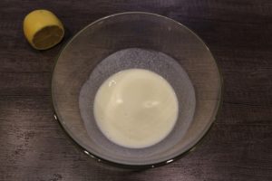 - Mélanger la crème sure avec le sucre et le jus de citron.