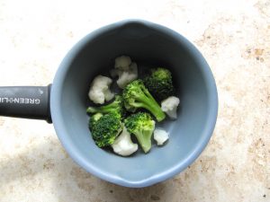 - On trie le chou-fleur et le brocoli en inflorescences, on les fait bouillir eau salée jusqu’à ce qu’elle soit tendre (littéralement quelques minutes). Raisins laver et sécher.