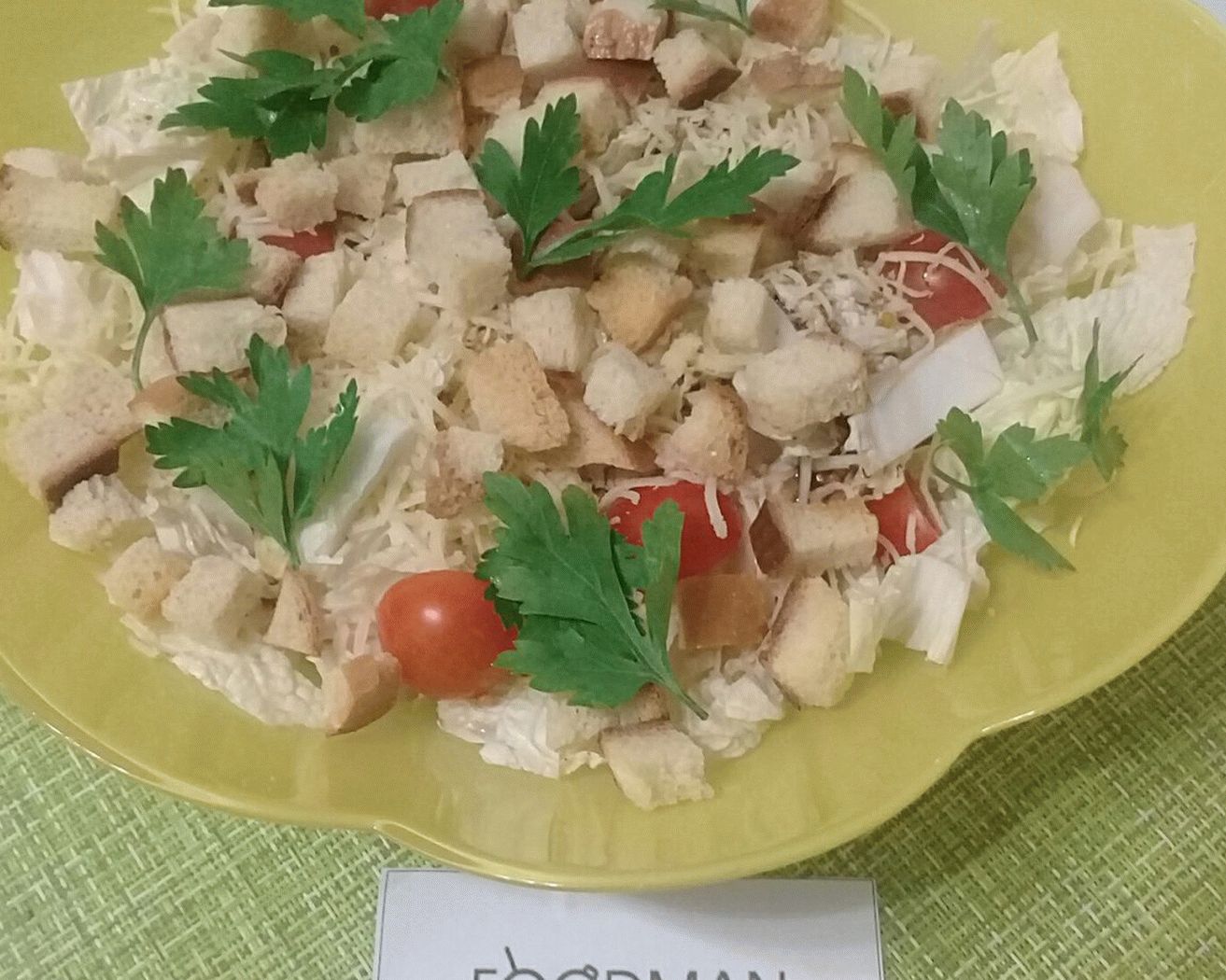 Salade de chou de Pékin avec tomates cerises et craquelins – très plat culinaire intéressant et savoureux. C’est parfait à la fois pour des occasions spéciales et pour tous les jours. Vif, juteux et une salade croustillante facile à préparer à la maison, favorise une humeur positive et bonne bien-être.