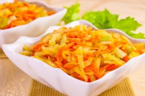 - Dans un bol avec les pommes, mettez les carottes hachées, le chou-rave, le céleri.