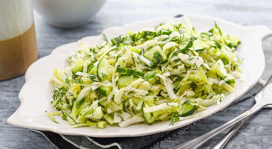 - Salade de chou assaisonnée avec de l’huile, du sel, du poivre et du vinaigre. Bien mélanger Vous pouvez laisser la salade une demi-heure réfrigérateur, alors il sera encore plus savoureux.