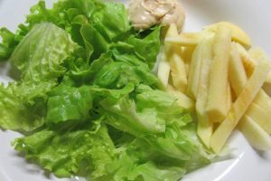 - Mélanger le yaourt, la moutarde, le miel, la sauce soja et assaisonner ail séché. Larme laitue en tranches, pomme et céleri couper en fines tranches. Mélanger et assaisonner tous les ingrédients. la sauce.