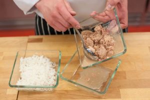 - Égouttez l’excès de liquide du thon et du maïs, faites bouillir le riz jusqu’à ce que préparation.