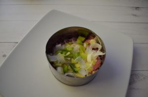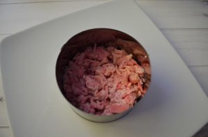 - Pétrir le filet de thon avec une fourchette, le déposer sur une assiette avec plaques de cuisson, graisser la sauce.