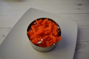 - Ensuite, étalez les protéines, les carottes et la sauce.