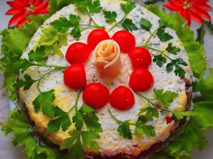 Délicieuse salade feuilletée aux haricots et aux champignons, ce qui est facile cuisiner à la maison selon ma recette, il est facile de décorer tout table de fête!