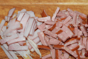 - Carbonate, jambon et fromage coupés en lanières 2 cm de long.