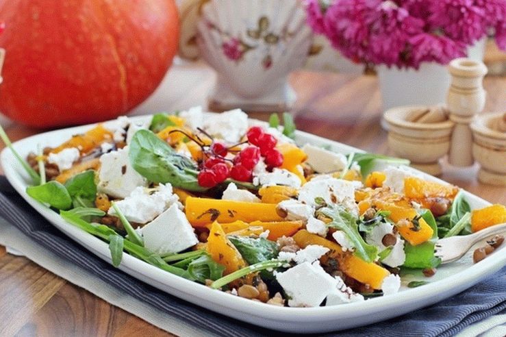 On peut préparer une salade de citrouille à l’automne pour le déjeuner ou le dîner. Convient pour une collation. Savoureux, sain et très satisfaisant, chaud une salade à la citrouille et aux lentilles n’est pas du tout difficile à cuisiner à la maison, voyez par vous-même!
